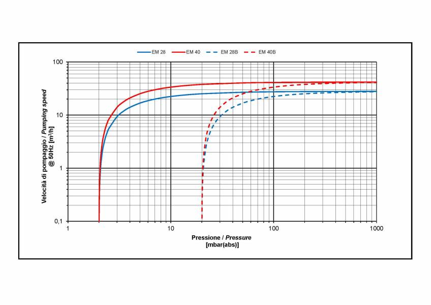 Las bombas EM 28 y EM 40 son adecuadas para la evacuación de sistemas cerrados o para funcionar a un vacío constante comprendido en el siguiente rango: